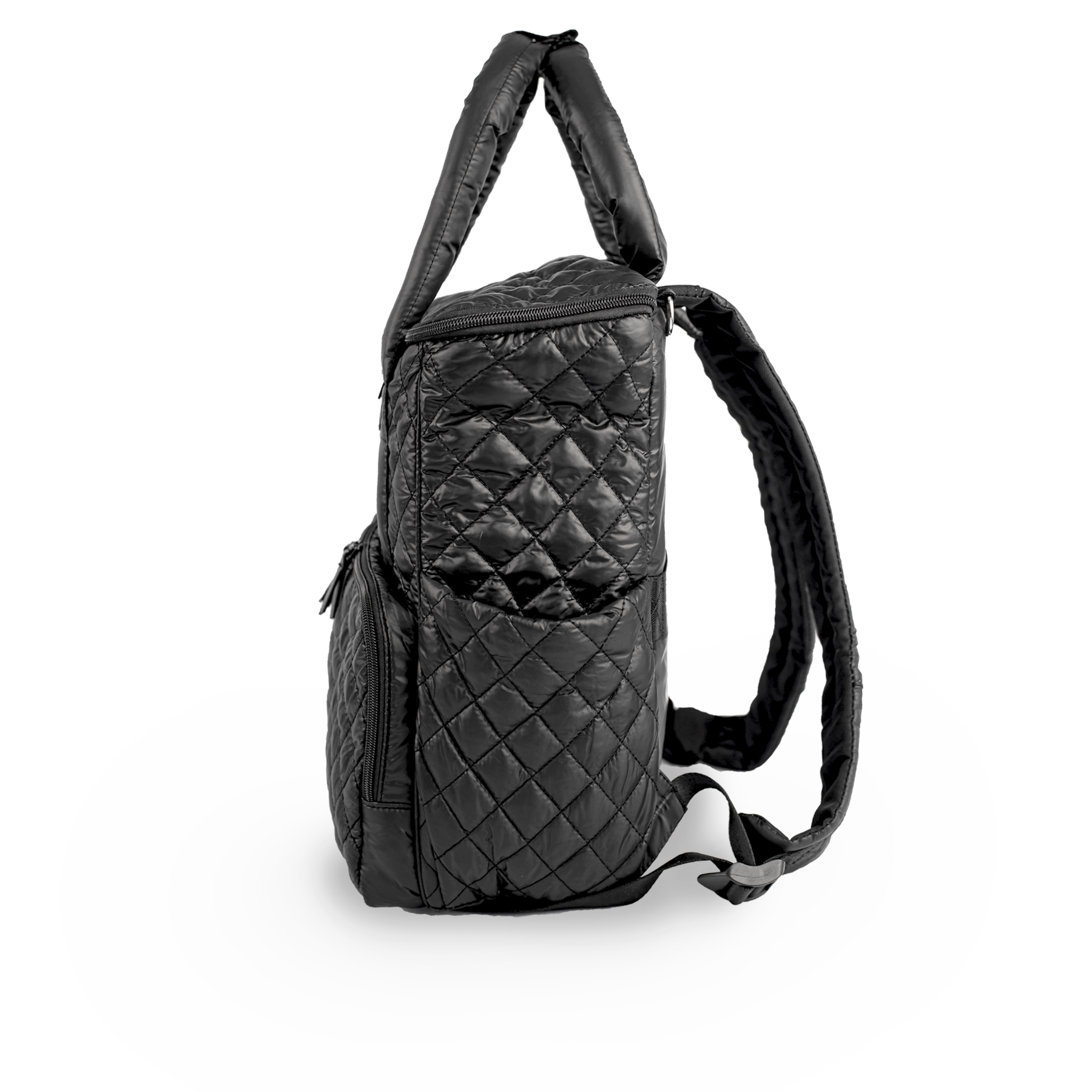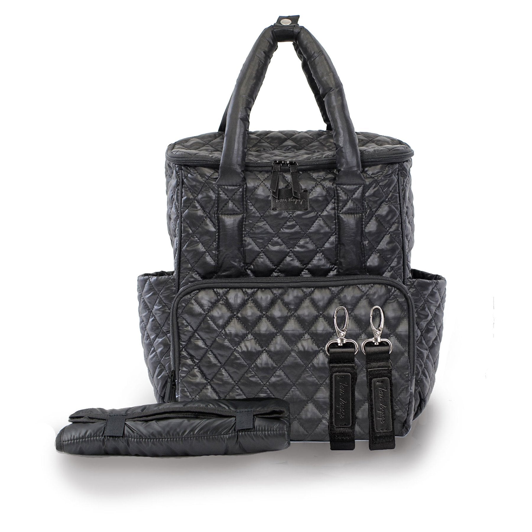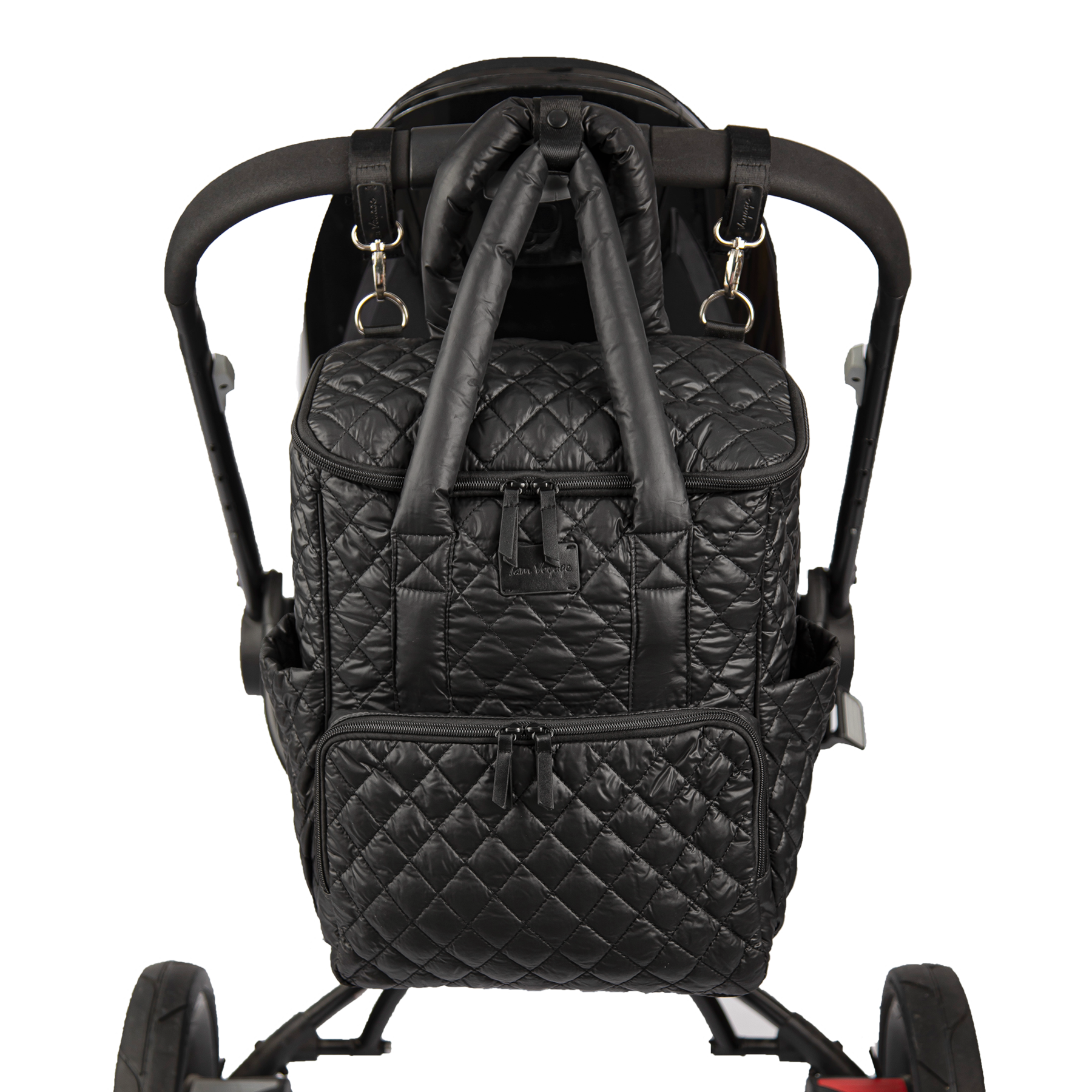 The 7 AM Diaper Backpack is a universal lightweight bag that wears over the shoulder, attaches to a stroller bar, and hooks onto any luggage. This bag offers multiple functional pockets including 2 thermal bottle compartments, a slot for a laptop, and additional storage space for all parents and babies on the go necessities.