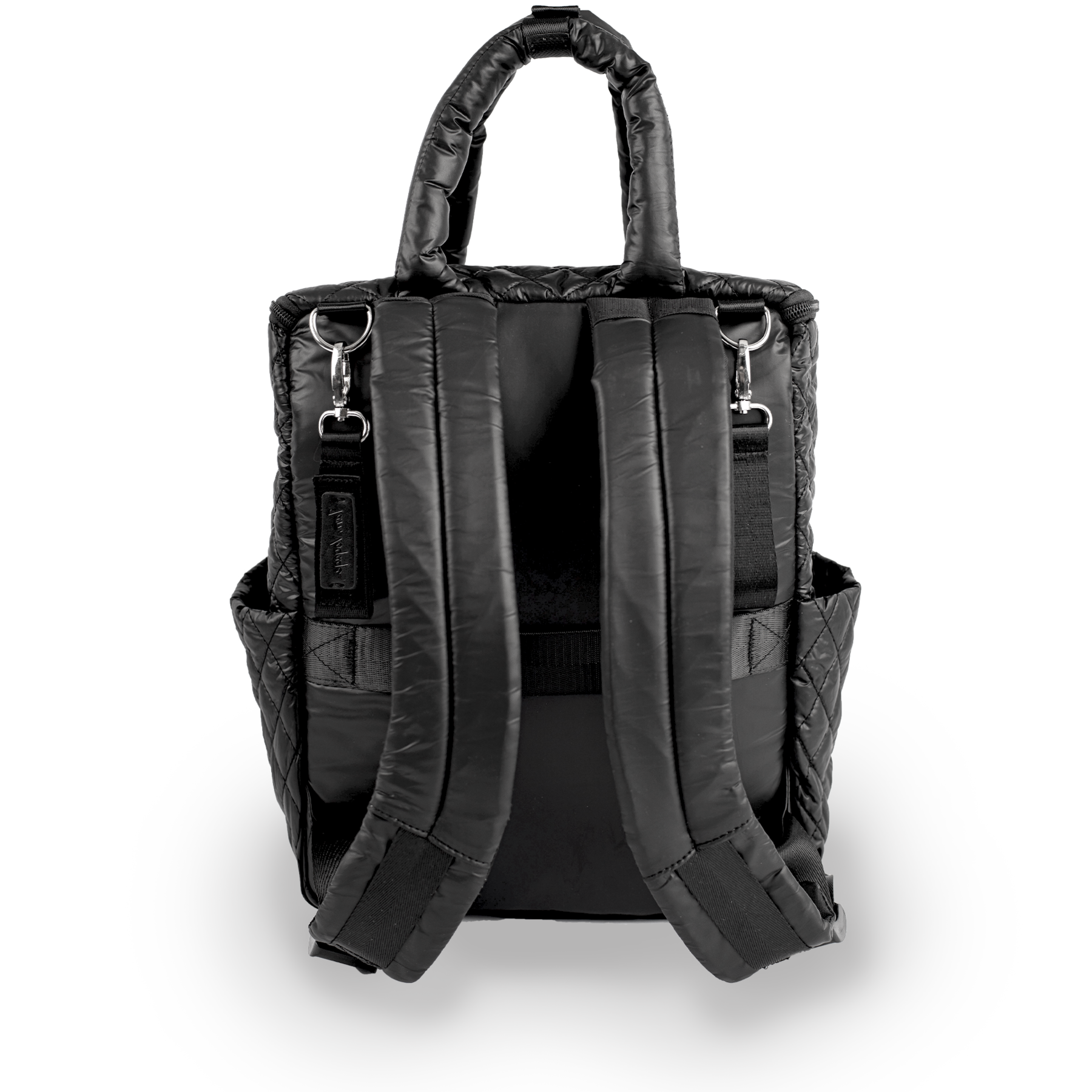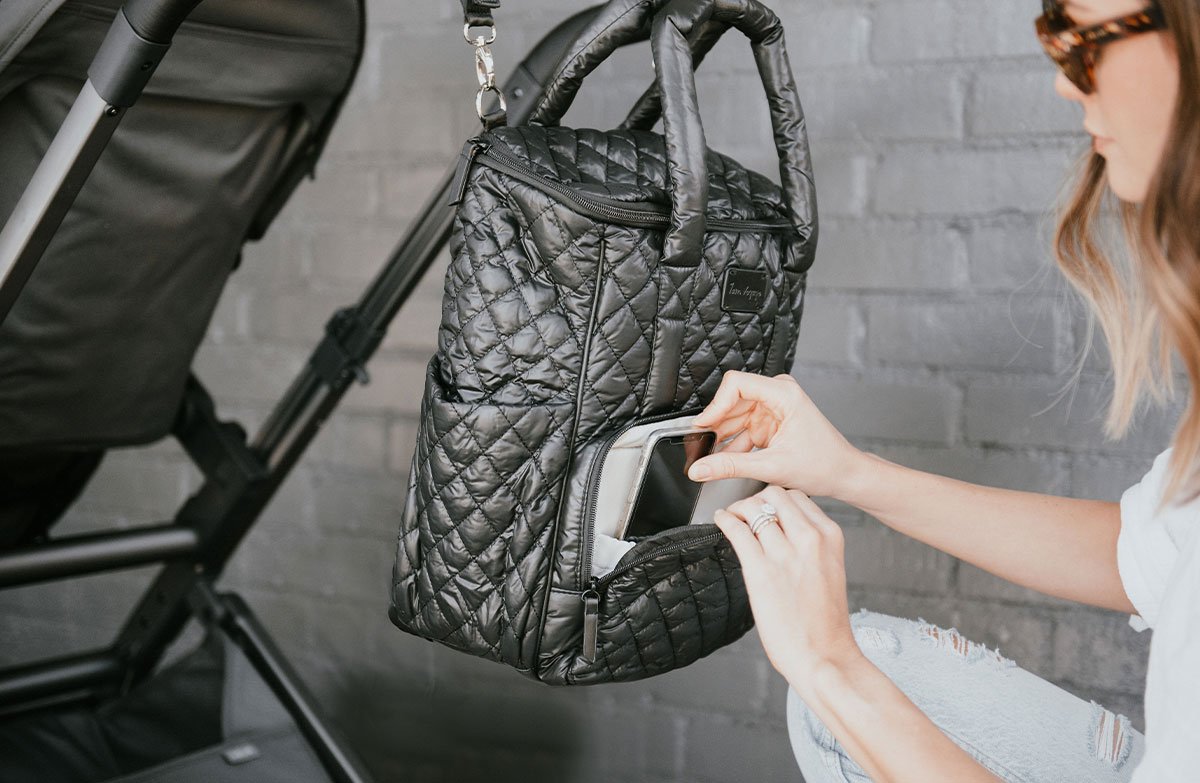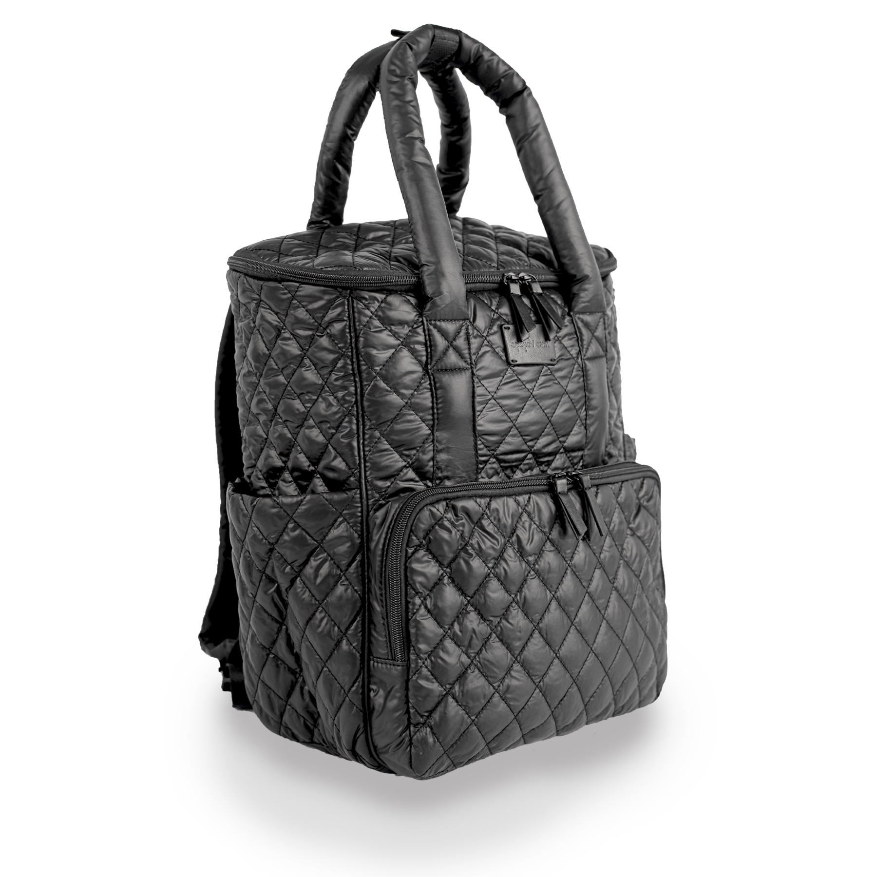 The 7 AM Diaper Backpack is a universal lightweight bag that wears over the shoulder, attaches to a stroller bar, and hooks onto any luggage. This bag offers multiple functional pockets including 2 thermal bottle compartments, a slot for a laptop, and additional storage space for all parents and babies on the go necessities.