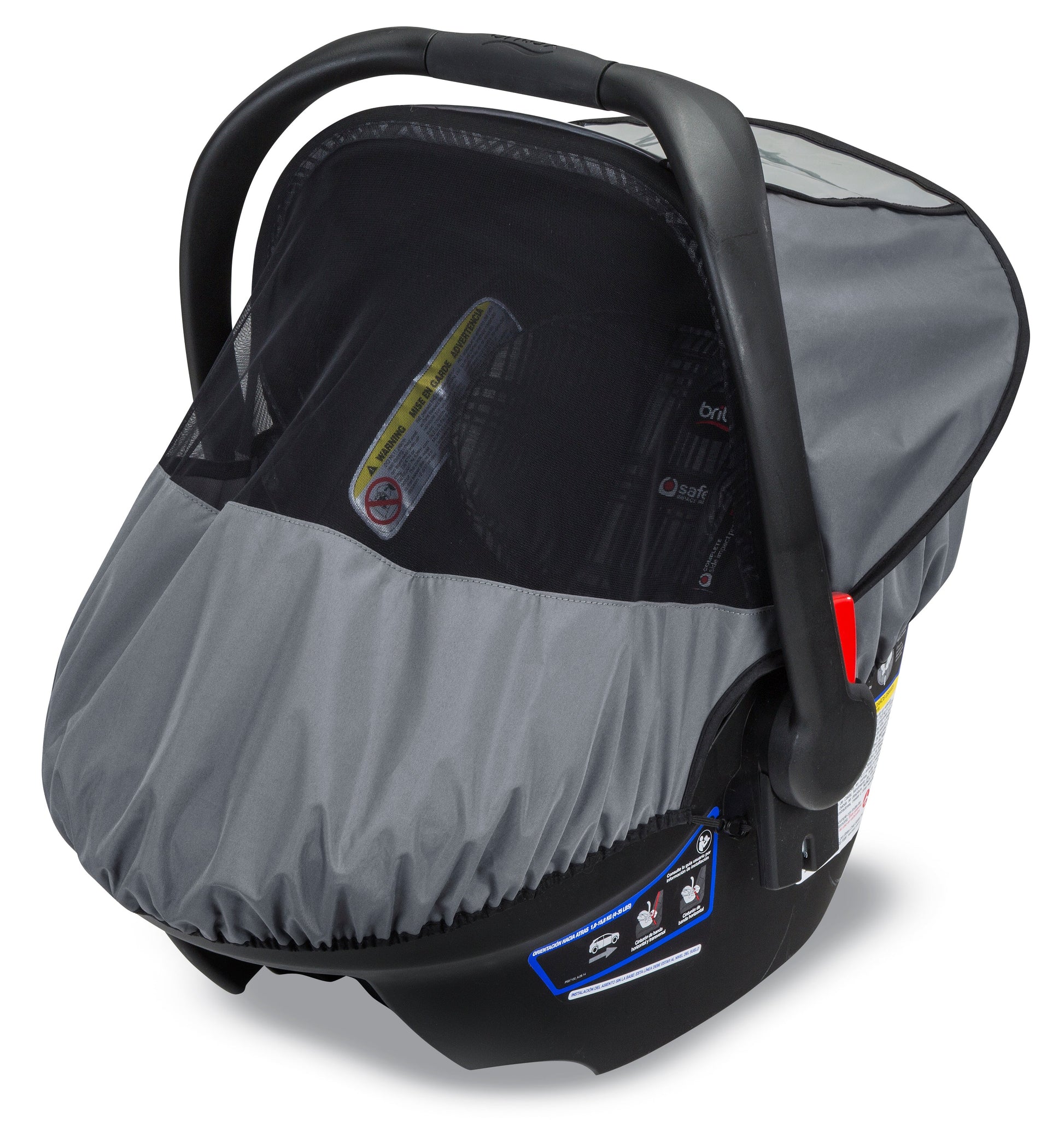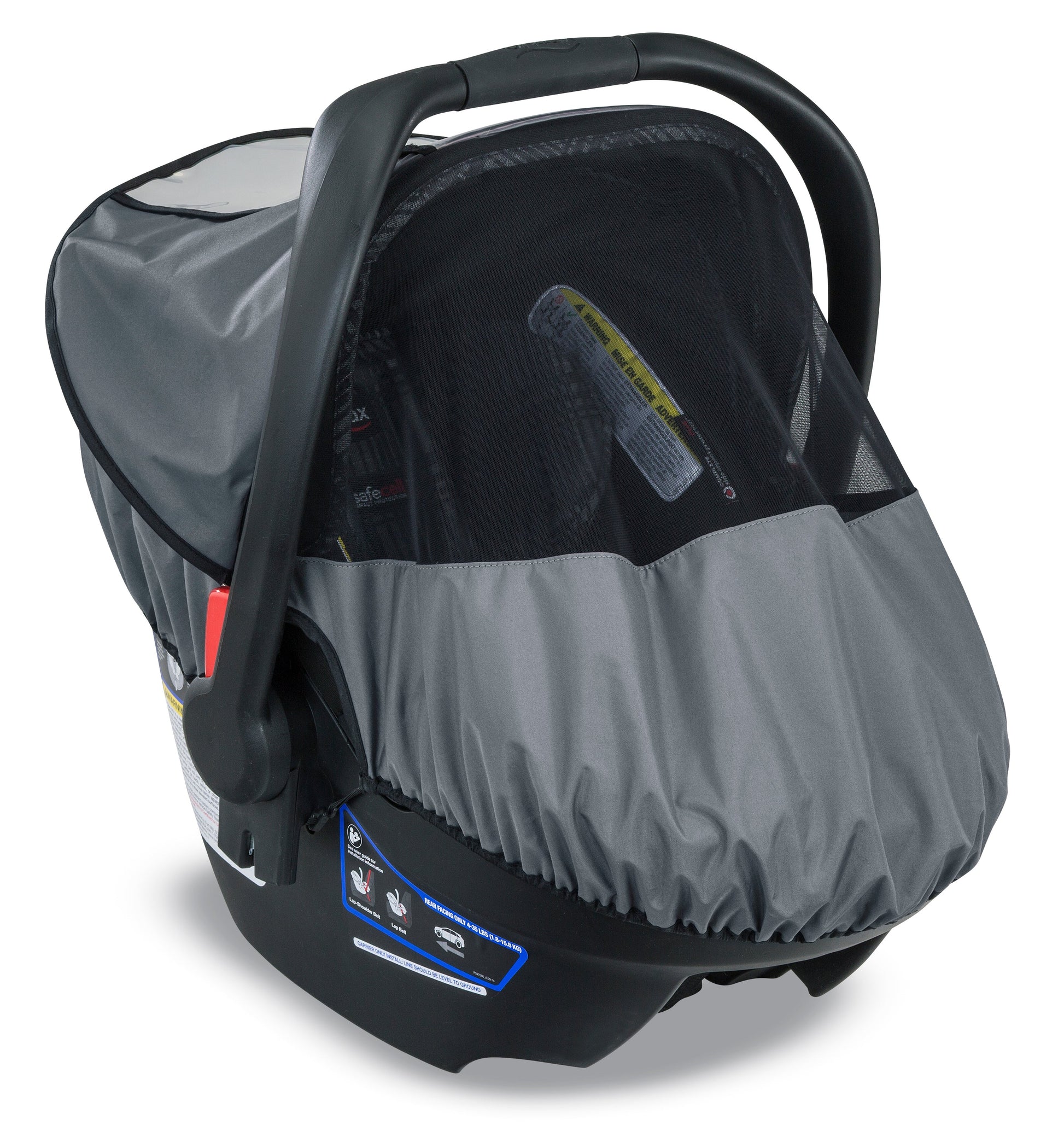 The Britax B-Covered Infant Car Seat All-Weather Cover provides protection from harmful UV rays, rain, wind and insects. When used for sun protection, the full coverage fabric is UPF 50+ and blocks 98% of UV rays. For rain and wind, simply fold back the sun panel, and a clear shield keeps your baby dry and comfortable. For insect control, the shield folds back to expose a large mesh window for increased ventilation and to keep your little one safe from bugs.