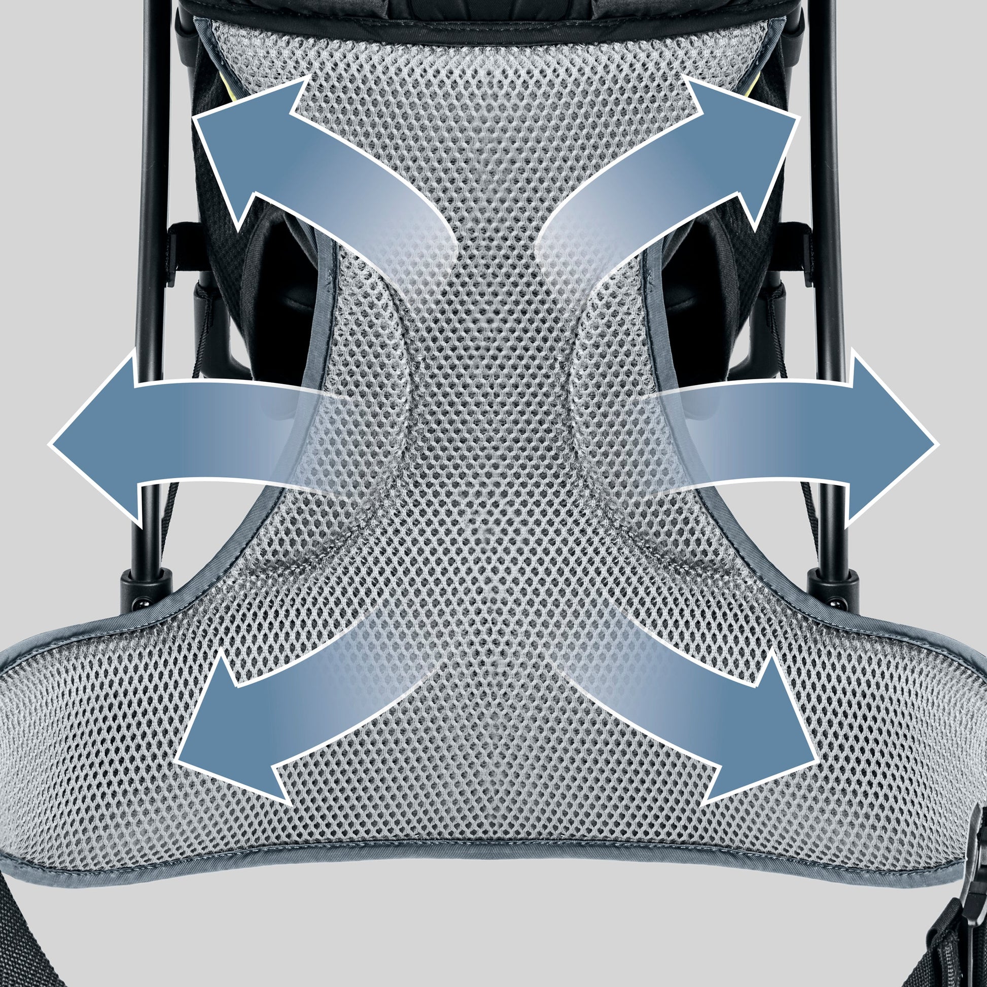 3D breathable mesh on back, lumbar, waistbelt and shoulder straps provides ventilation.