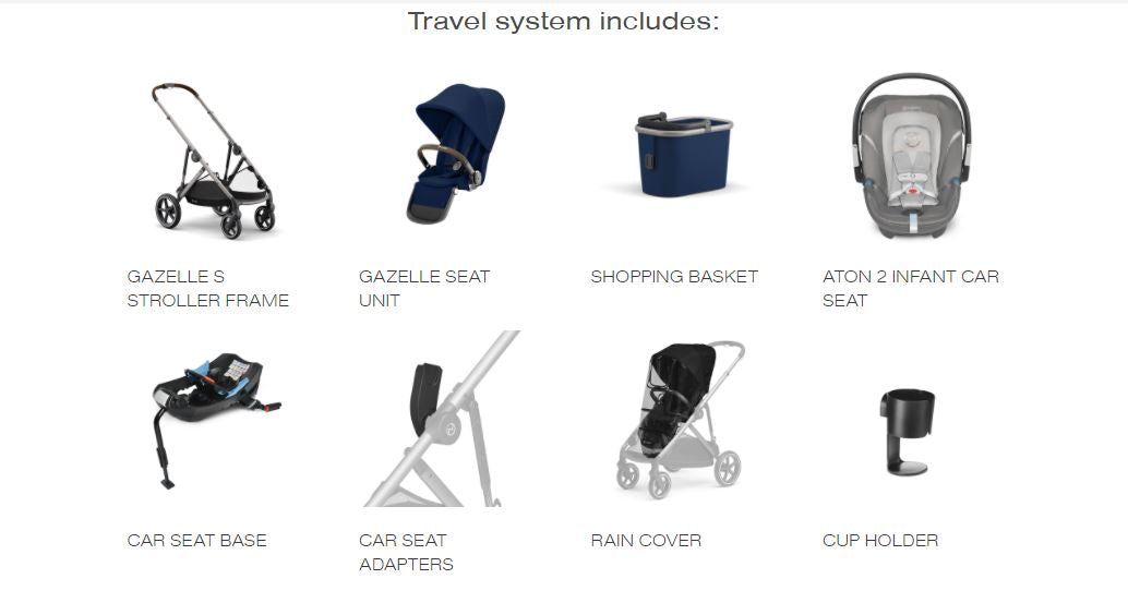 - Supports 20+ configurations of Gazelle S Seat Units, Gazelle S Cots, CYBEX infant car seats, or Shopping Baskets.