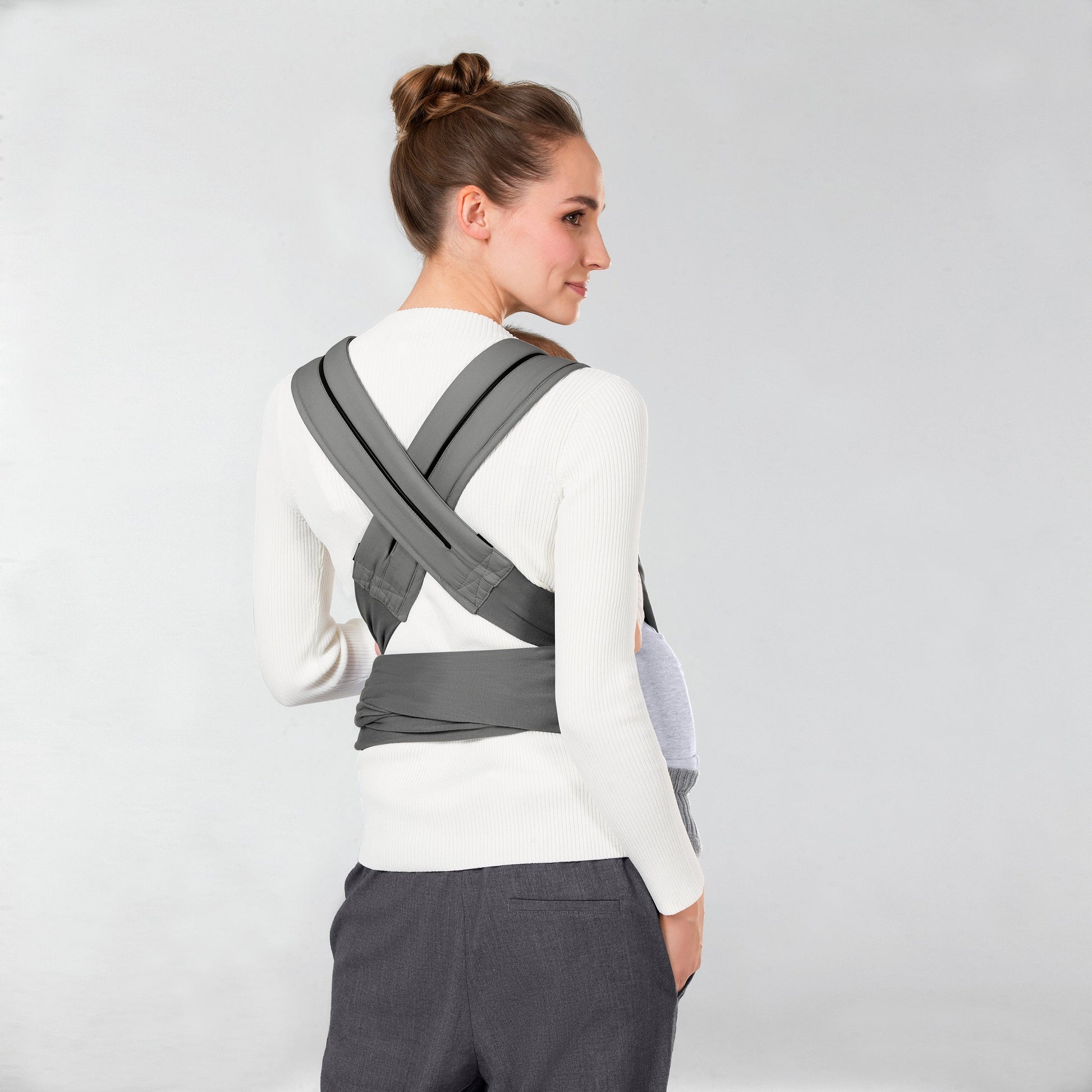 - A unique hip-carrying position has the same benefits as a forward-facing carry but allows baby to turn their head away when overstimulated.