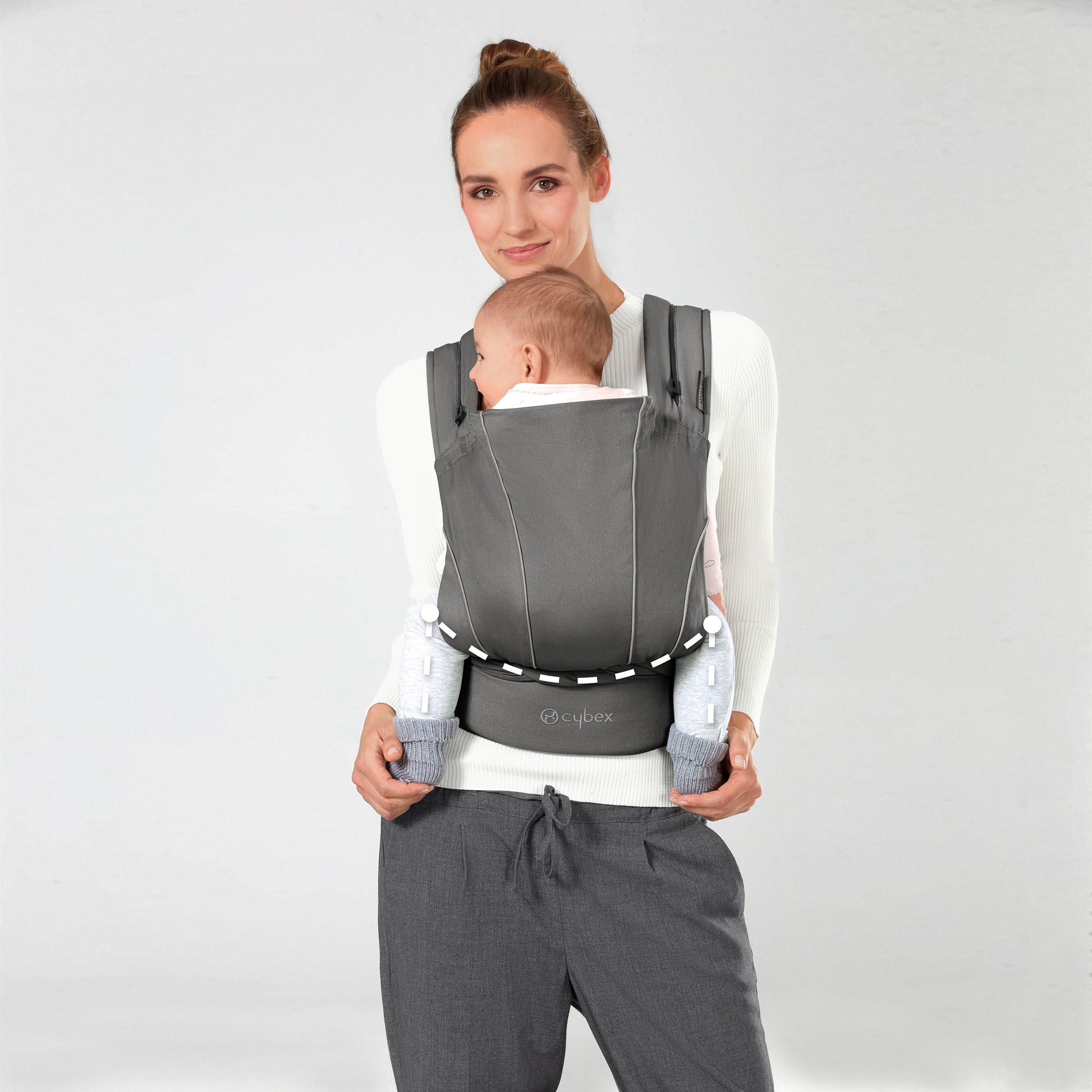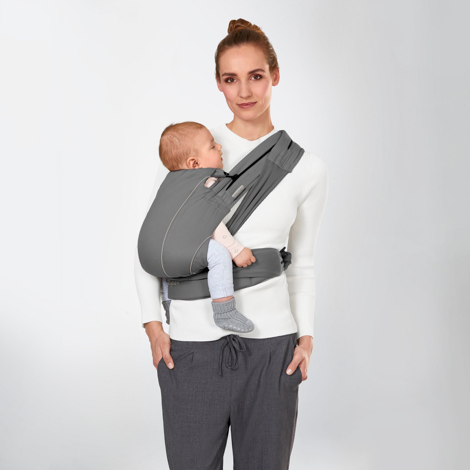 The MAIRA.tie from the CYBEX Gold range is easy to use, adjust and share between caregivers. It adjusts in seconds to fit waist sizes from 26”- 64" and features self-adjusting straps for comfortable carrying. The carrier is lightweight, compact and easily fits in your diaper bag. It also adjusts as the baby grows: the ergonomic seating panel adjusts in width and height so you can carry your child from 7.7-33 lbs.