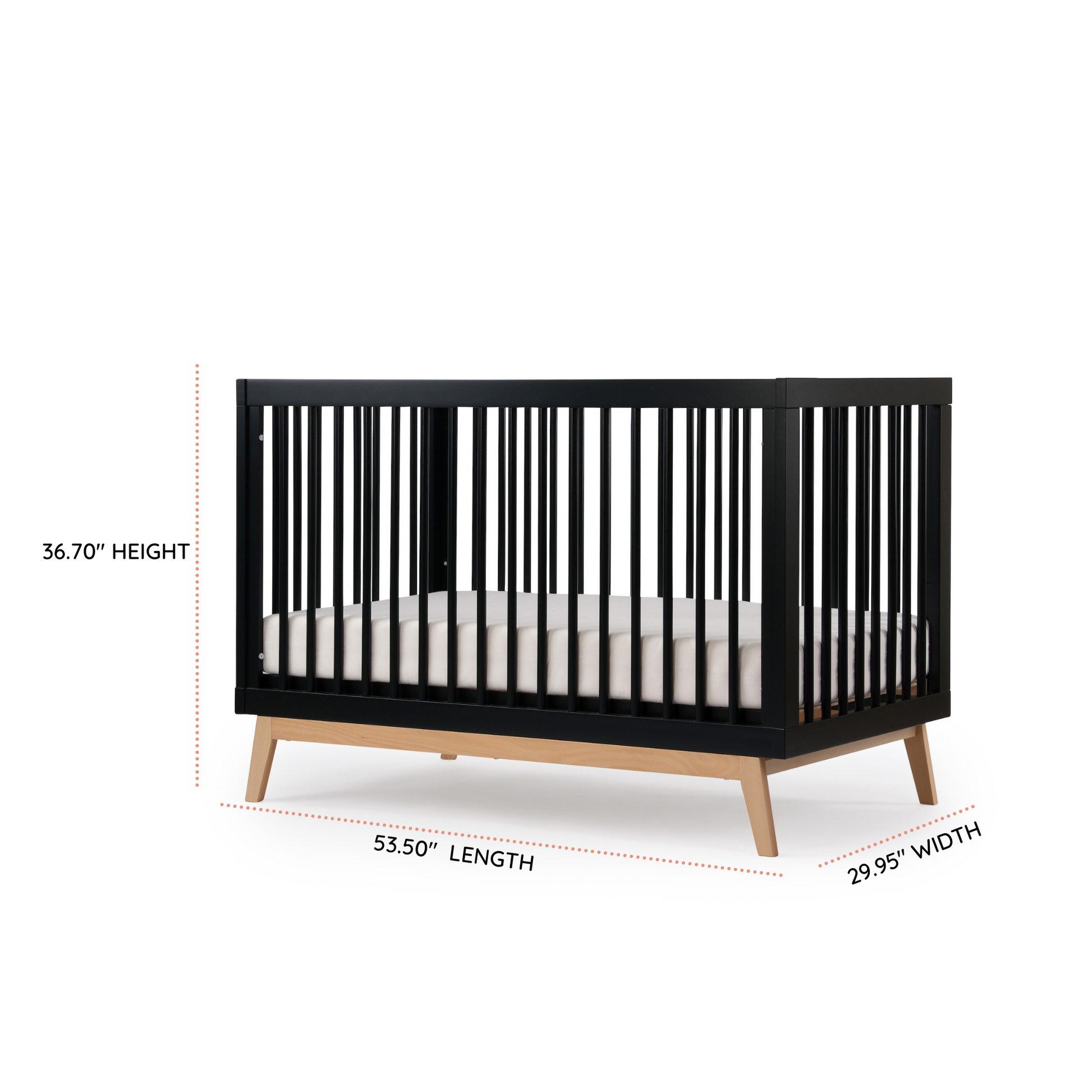- 3-in-1 convertible crib (crib, toddler bed, and daybed).