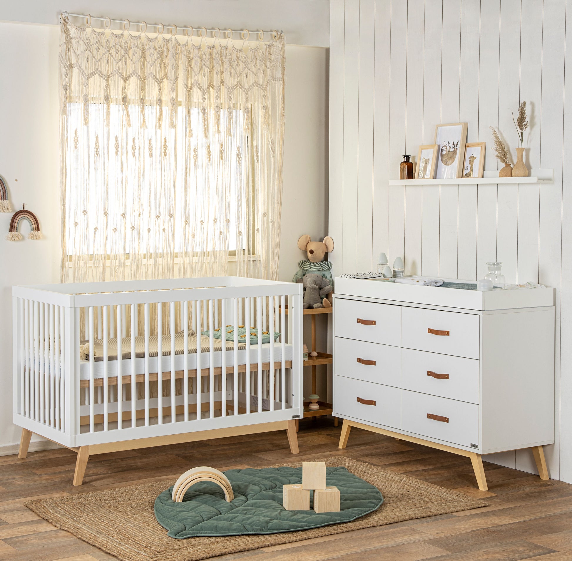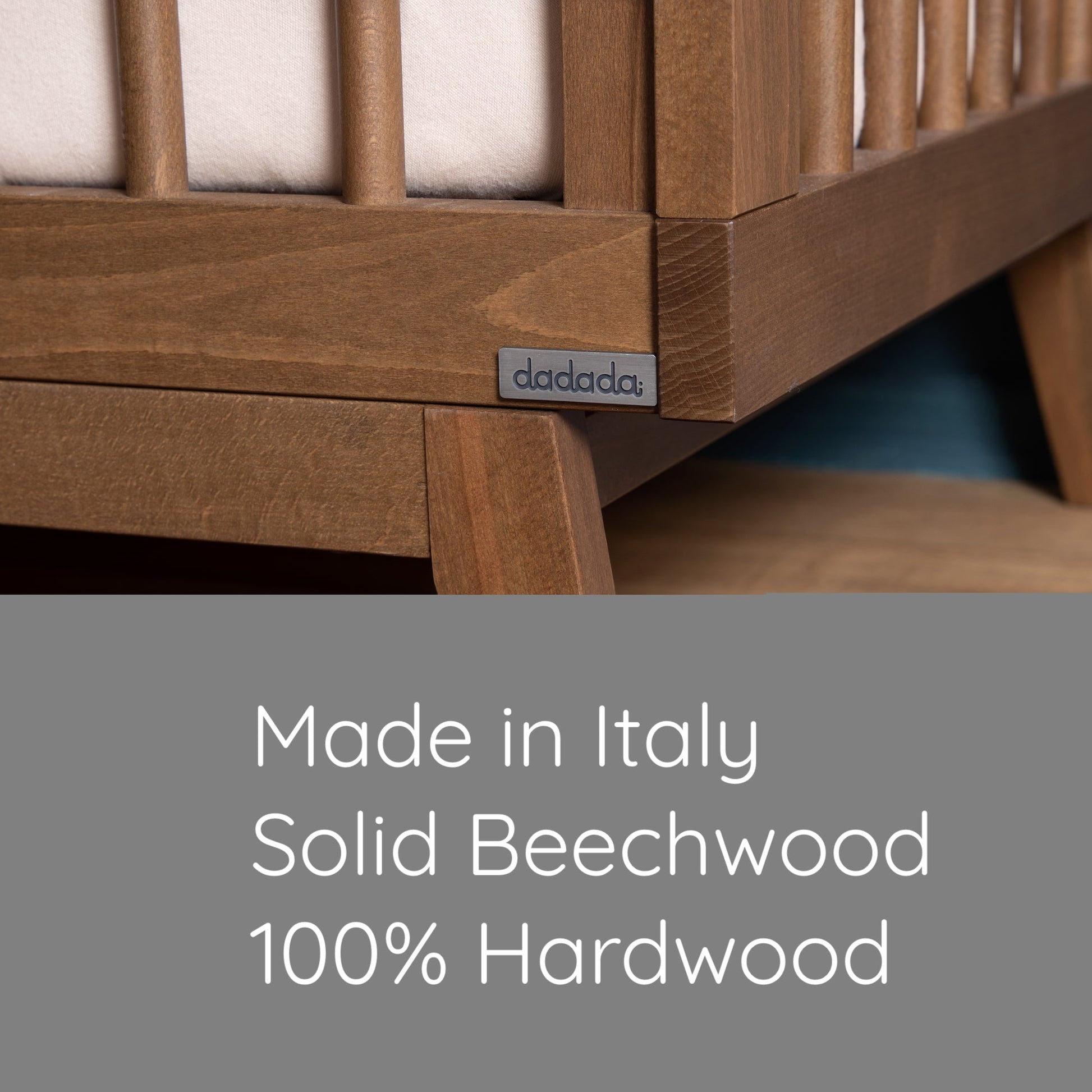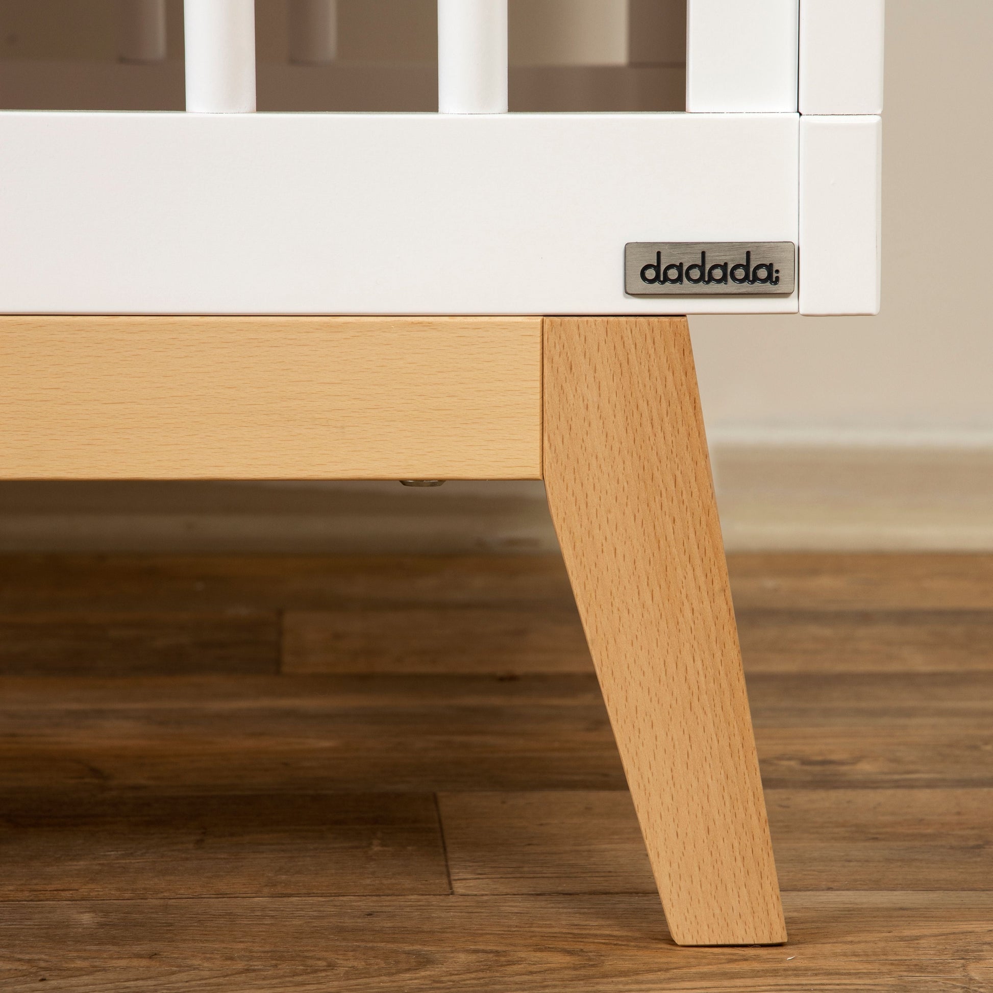 The Soho 3-in-1 Convertible Crib updates a classic open design with mid-century modern lines to complement any interior. Sturdy inclined legs tuck beneath a strong frame and all four walls allow easy air circulation. With three mattress positions available, you can easily adjust the bed heights to match your baby’s growth from newborn to toddler (toddler bed conversion kit sold separately). Steeped in elegance and constructed from solid beech wood, the Soho 2-in-1 Crib pairs perfectly with the Soho Dresser, or with any other dadada dresser.