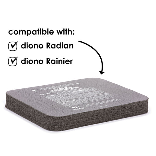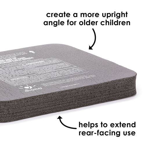 The Diono angle adjuster has been designed to maximize the use of your car seat without sacrificing on little one's safety, or parents comfort. It simply maneuvers your rear facing car seat to an upright angle gaining 4" of leg space for front seat passengers. This Angle Adjuster is compatible with the Radian and Rainer convertible car seats in rear facing position, and is intended for children who have complete head control, and can sit up unassisted.