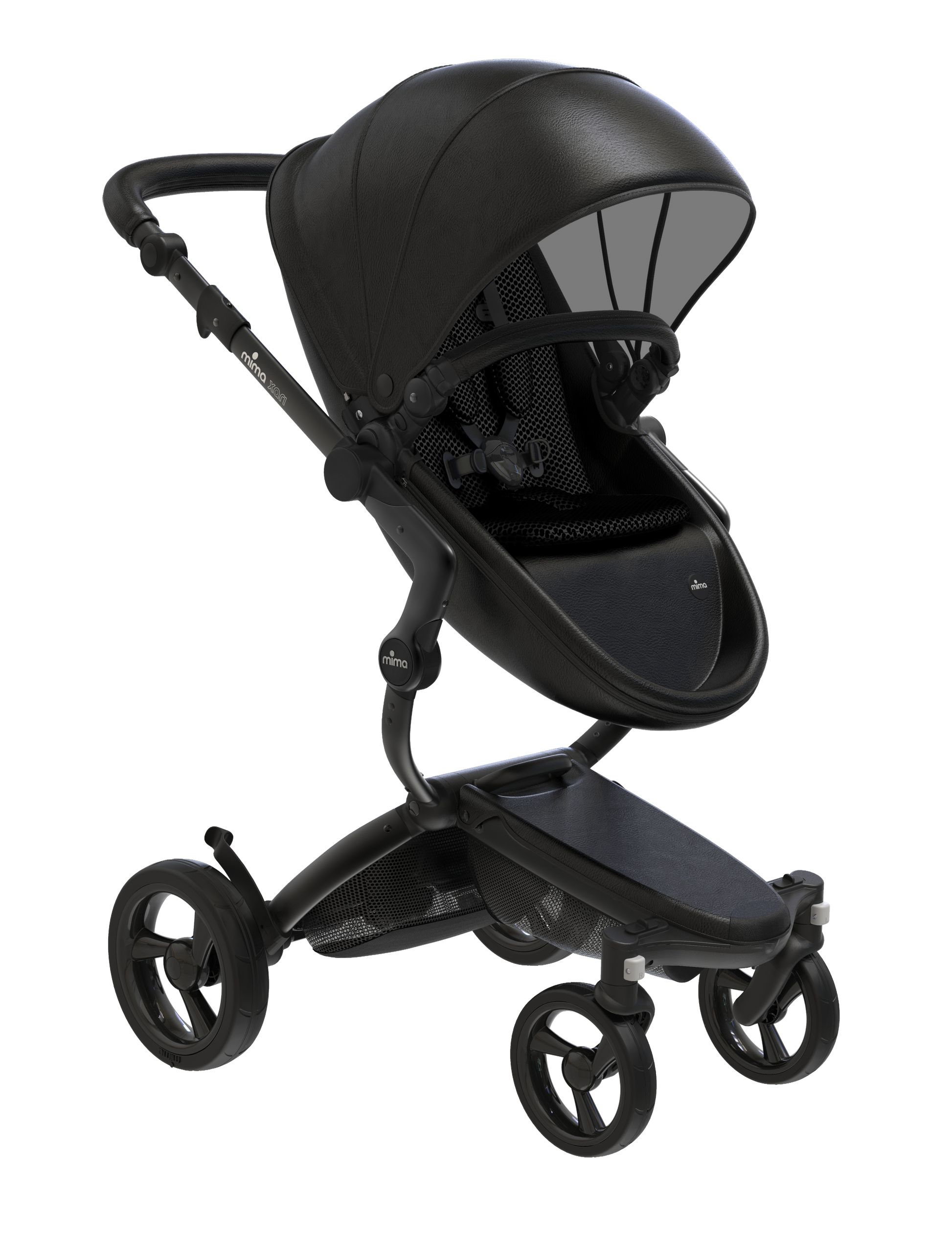 The Mima Xari 4G Completer Stroller is an iconic elite pushchair offering enhanced unique features. This stroller includes a newborn cot and toddler seat capable to transition in 3 recline levels both in parent and street-facing position. The sun canopy the bassinet and seat comprise of enhanced vegan leather that easy wipes clean. The complete stroller is equipped with a comfortable mattress and from birth starter kit in several eye-catching prints. In addition, the adjustable seat height, harness straps, handlebar and bumper bar create a custom fit that contours to parents' individual needs. When the bumper bar is in the upright position, easily remove the seat for a simple freestanding compact fold. A functional carry strap is provided for practical travel.