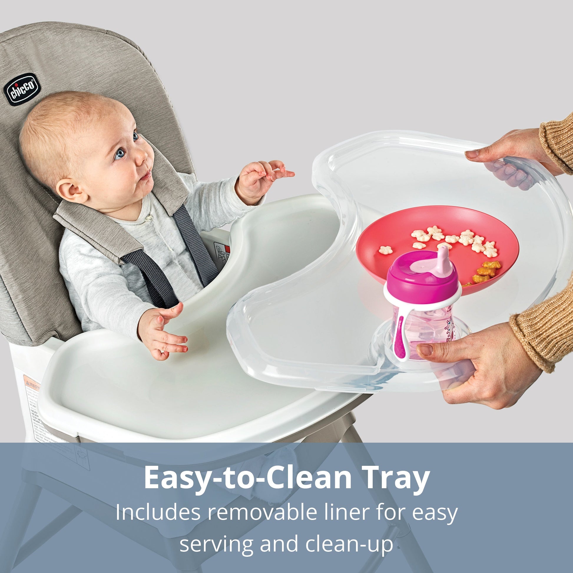 Removable tray liner for easy cleanup.