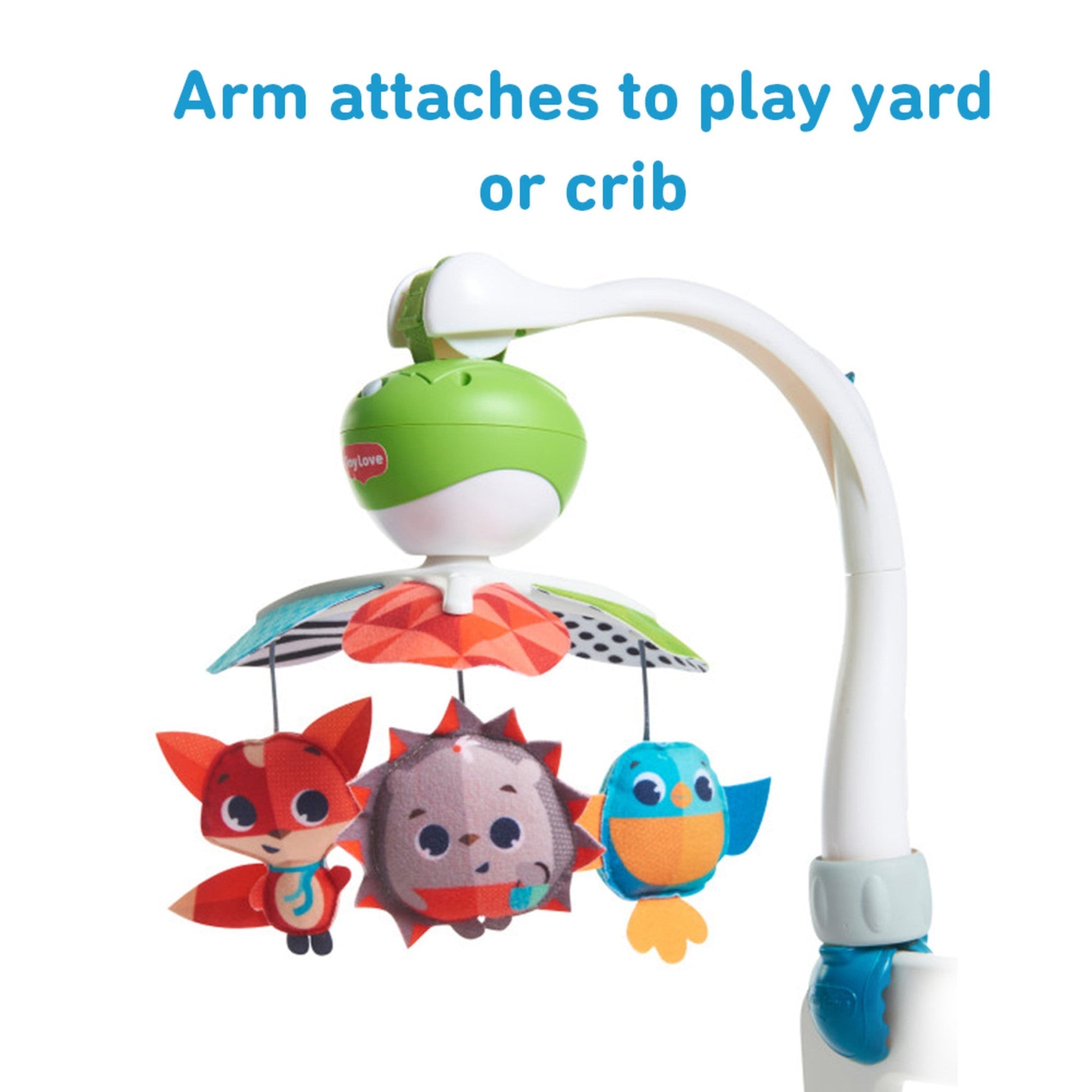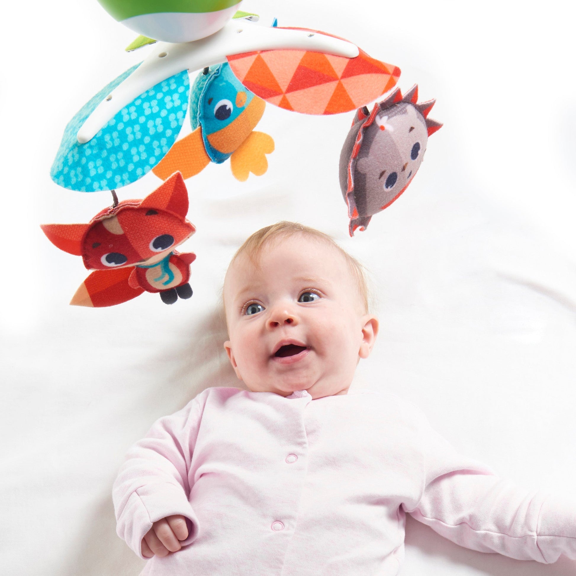 This charming Tiny Love Take-Along Mobile will keep babies engaged and amused at home and on the go with inspiring characters and sweet melodies. With 3 easy connectors, this mobile can go everywhere with you, giving your little one a feeling of home away from home, all while encouraging development.