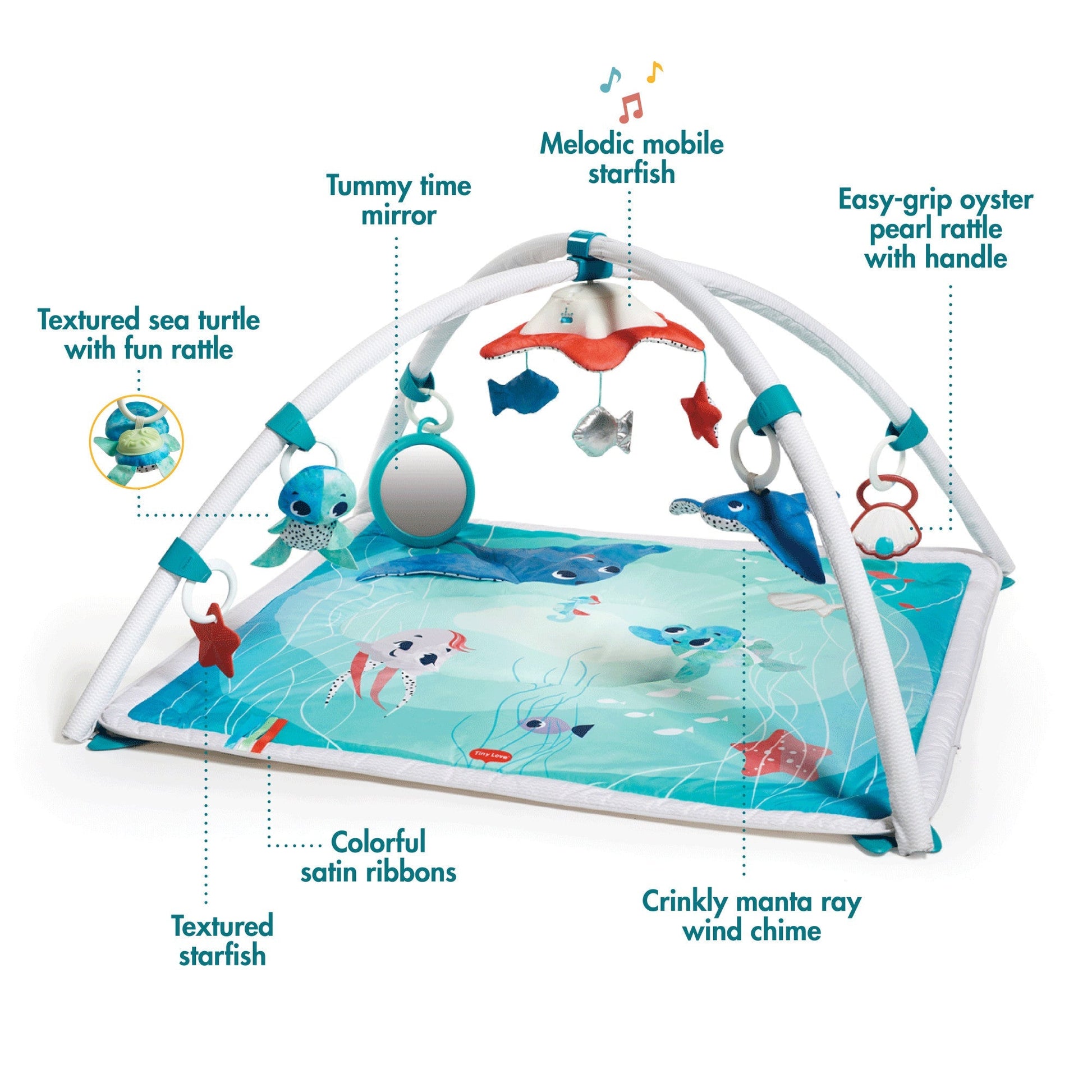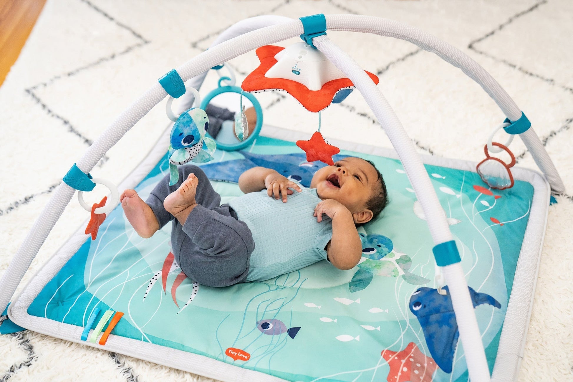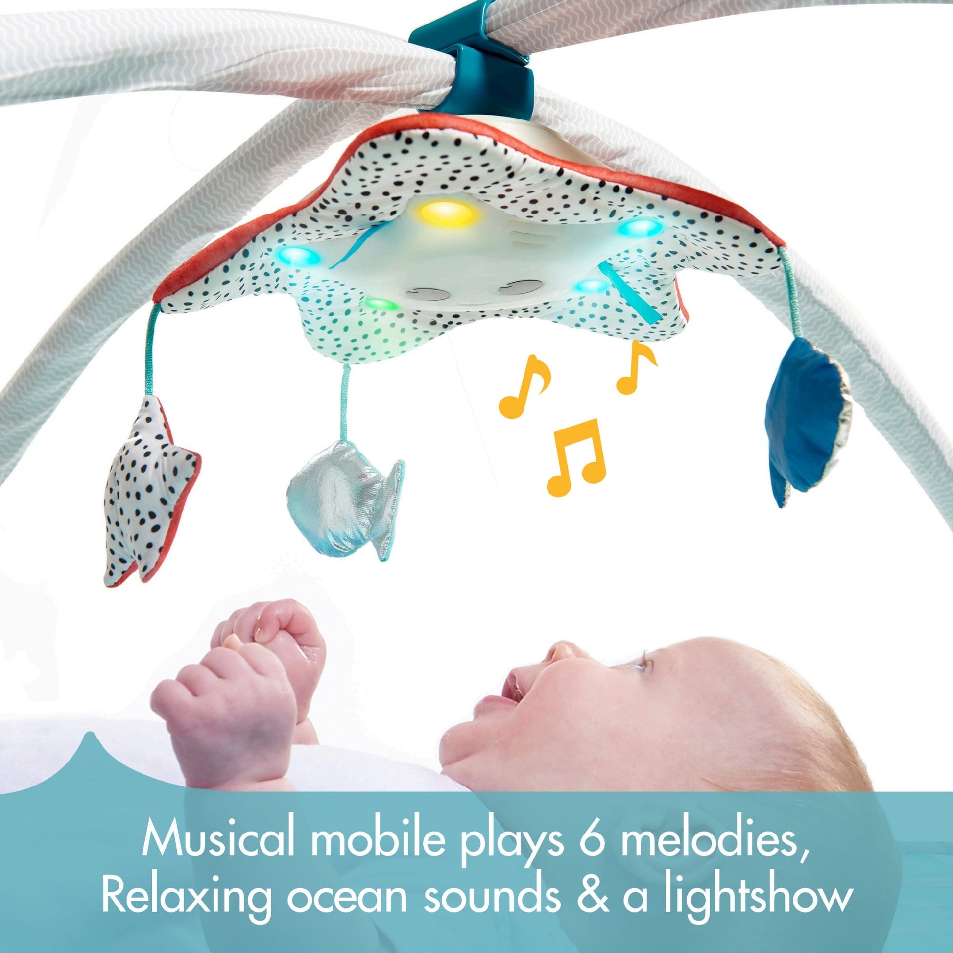 The Tiny Love Treasure the Ocean 2-in-1 Musical Mobile Gymini is a uniquely designed baby gym that comes with a delightful musical starfish mobile. With an array of advanced features, such as an auto-off timer, 5 LED lights with fade-out effect, and more, this adorable starfish mobile will engage babies while fostering senses and cognitive development.