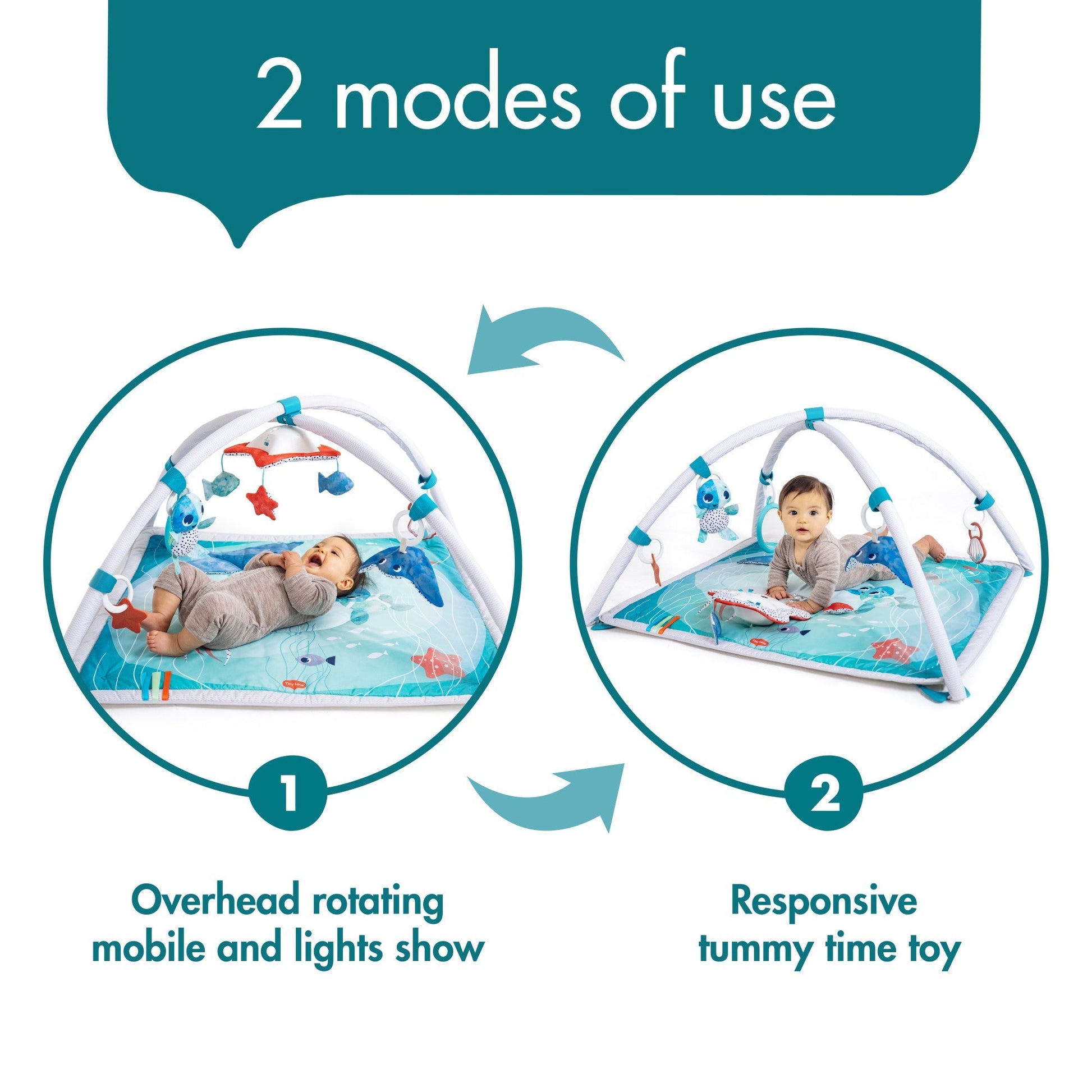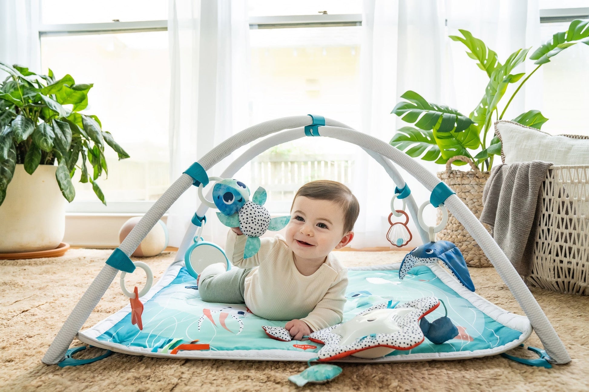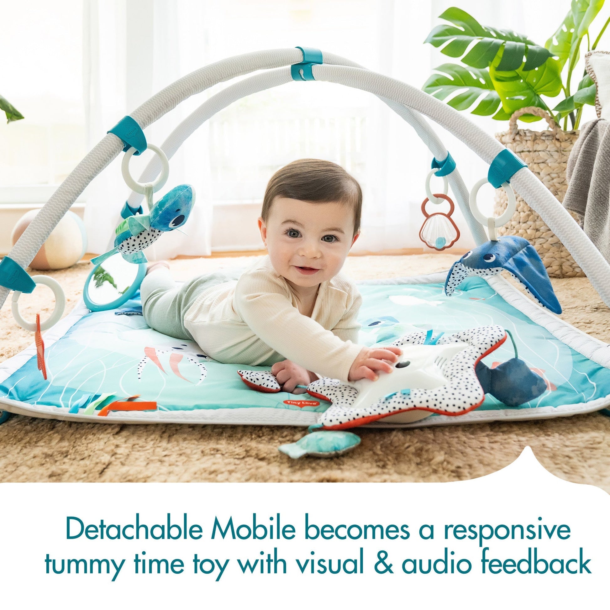 The Tiny Love Treasure the Ocean 2-in-1 Musical Mobile Gymini is a uniquely designed baby gym that comes with a delightful musical starfish mobile. With an array of advanced features, such as an auto-off timer, 5 LED lights with fade-out effect, and more, this adorable starfish mobile will engage babies while fostering senses and cognitive development.
