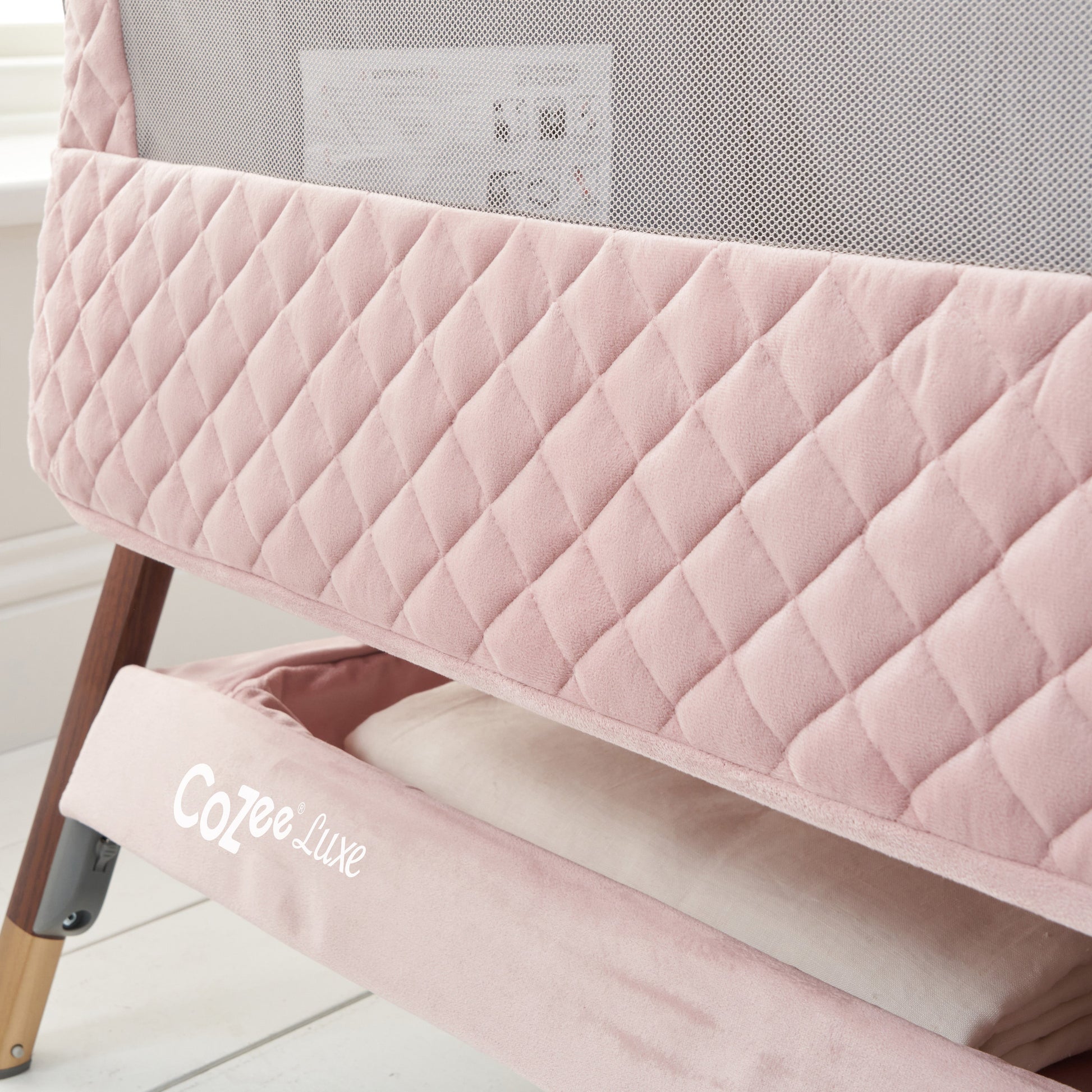 With sumptuous design elements and a distinctive color palette, the CoZee Luxe bedside crib is a stylish yet practical sleeping solution for your newborn. It offers you the comfort of sleeping safely, side-by-side with your baby from birth up until six months. Easy to assemble and lightweight, this crib is also a great choice for traveling.